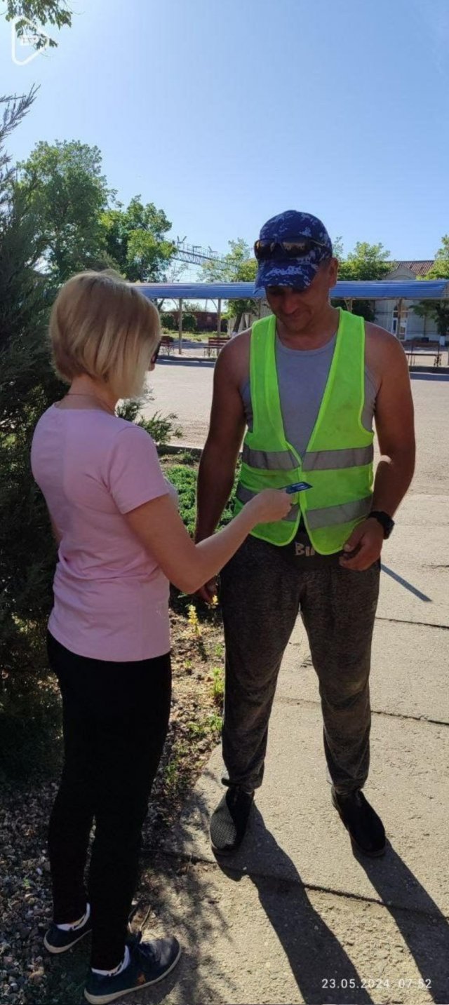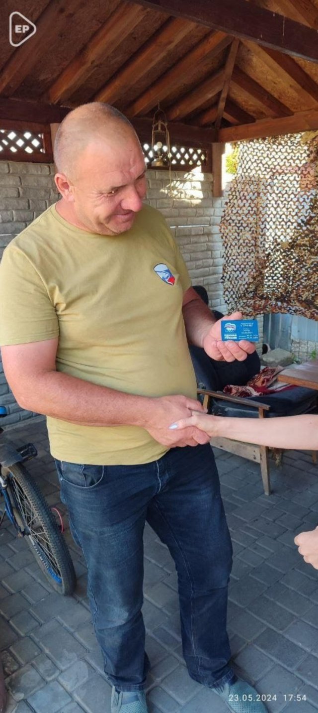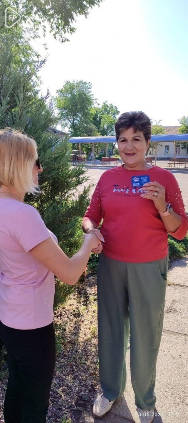 Саме на вулиці вручали пластикові партійні квитки новим членам окупаційної обласної партійної організації «Єдиної Росії» у селищі Рикове Генічеського району.