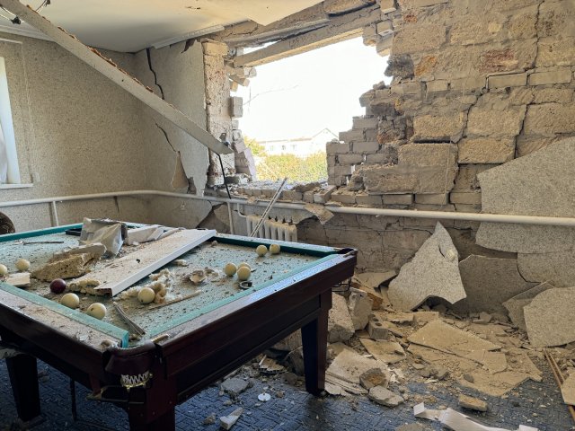"Тут влучання були і недалеко від мене. А я через дорогу живу. У мене велика хата, але навіть вона дрижала. Вирвало двоє дверей, вікно вибите, дах пошкоджений. На другому поверсі стіна вся побита уламками", — каже Ольга.
