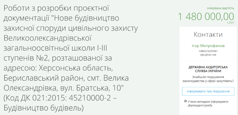 У грудні 2023 року був проведений тендер на роботи з розробки проєктної документації. Договір на 1 мільйон 480 тисяч гривень уклали з товариством "КБ АРХПРОСТІР". Проєкт має бути виконаний до 25 грудня 2024 року. Нещодавно, 18 листопада, до угоди були внесені зміни. В угоді зазначена інша назва товариства - ТОВ "НДСК ПРОЕКТ".