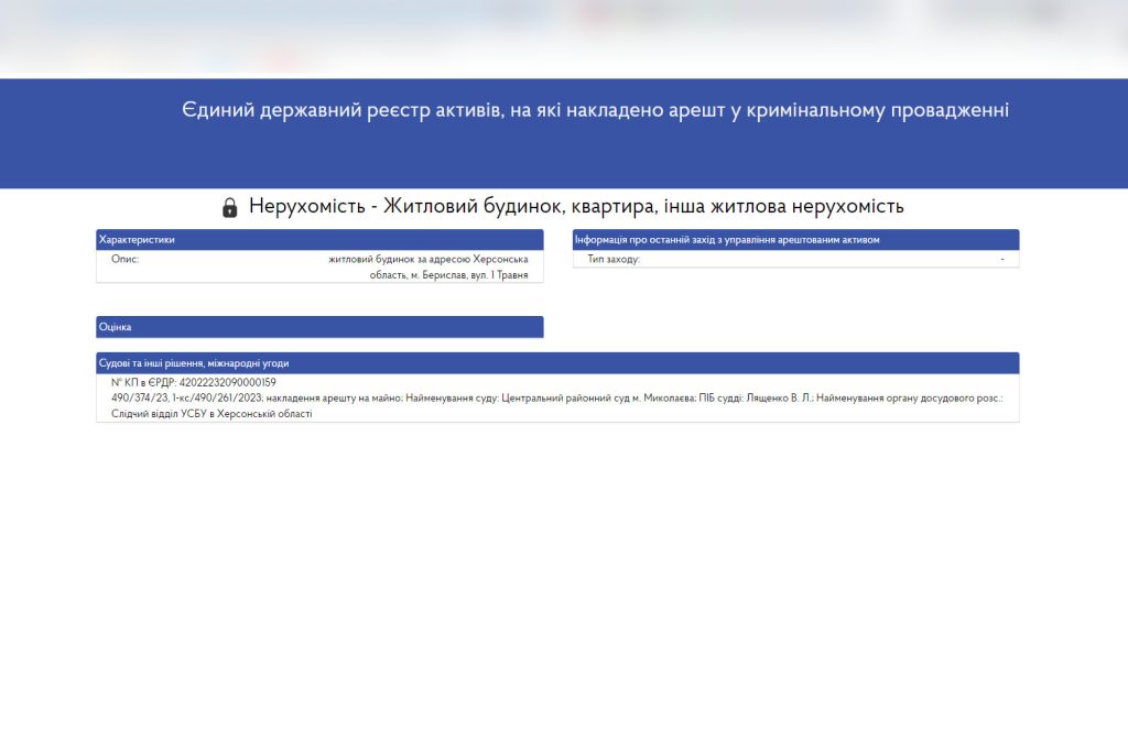 Центральний районний суд міста Миколаєва арештував будинок “директора” медколеджу в Бериславі у Херсонській області Іллі Останьковича. Про це свідчить з Єдиного державного реєстру активів, на які накладено арешт у кримінальному провадженні. Останькович є фігурантом кримінального провадження з Реєстру. Також, за інформацією з Державного реєстру речових прав на нерухоме майно, він дійсно має будинок на вулиці 1 Травня у Бериславі. Як це вказано і у Реєстрі арештованих активів. Іллі Останьковичу інкримінували колабораціонізм і пособництво державі-агресору. На “посаді” він організував у коледжі навчання за освітніми “стандартами” Росії та схиляв його викладачів до співпраці з загарбниками. За це Останьковичу заочно загрожує кримінальна відповідальність. Мост