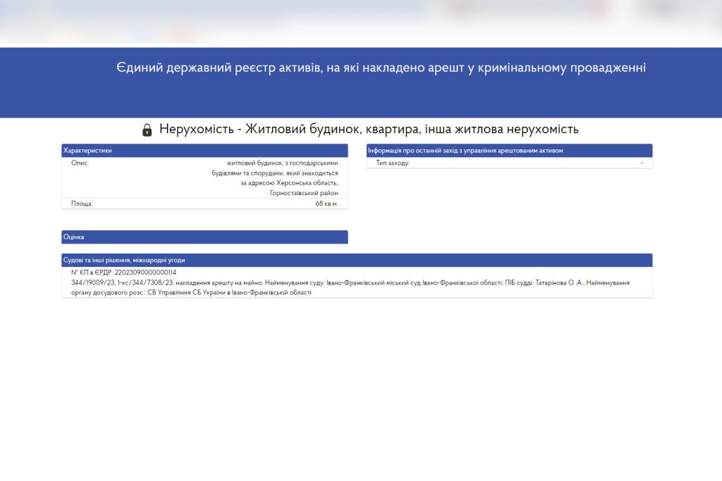 Про це свідчить інформація з Єдиного державного реєстру активів, на які накладено арешт у кримінальному провадженні.