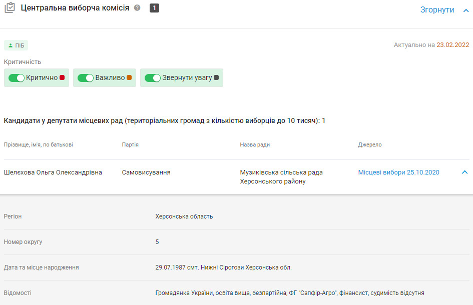 Сергій Миколайович Сорокунський у 2020 році обрався до Херсонської облради від нині забороненої партії “Блок Володимира Сальдо”.