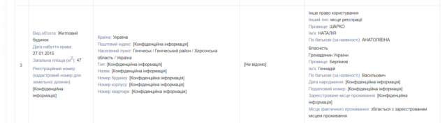 До окупації Херсонщини Наталія Шарко, як українська суддя, мала подавати декларації. Останній документ вона подала у 2021 році — повідомлення про суттєві зміни в майновому стані: Шарко задекларувала зарплату судді у 179 250 гривень у липні 2021 року. У 2020-му Шарко задекларувала майже мільйон гривень суддівської зарплати за рік: 951 935 гривень.З нерухомості у власності Наталії Шарко – земельна ділянка в Олешках (нині в окупації), а дві квартири і будинок – у праві користування. Причому власником Однієї з квартир є Геннадій Берлімов – батько іншої судді-колаборантки Юлії Берлімової. Жодного родича в декларації Шарко не зазначено.