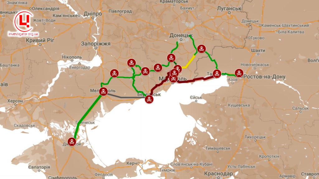 Центр журналістських розслідувань зафіксував старт нового логістичного проєкту Росії на окупованому Приазов’ї – розширення сухопутного коридору з Ростова в Крим через Донецьку і Запорізьку області. У квітні окупанти почали прокладати об’їзну на північ від Маріуполя – близько 70 кілометрів дороги, що передбачає зведення нових мостів, один з яких буде довжиною не менше 500 метрів.