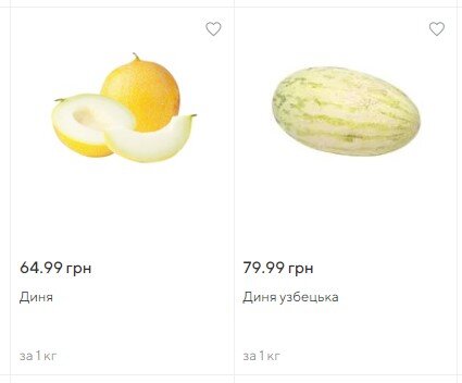 А ось ціни на диню так і залишаються на високому рівні. Зокрема в Ашан диню можна придбати за ціною від 57,90 грн/кг до 62,90 грн/кг.