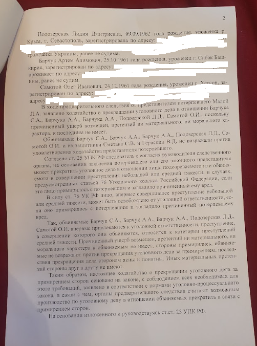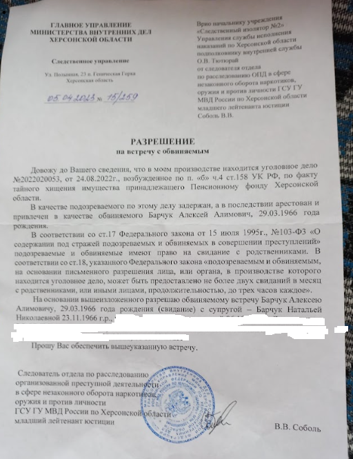 Олексій Барчук: Мене допитувала слідча Соболь Вікторія Вікторівна. Вона одразу пригрозила мені десятьма роками тюрми, сказала, що ми «разграбили российский Пенсионный фонд». А це, мовляв, крадіжка «государственного имущества в особо крупных размерах, совершенная группой лиц».