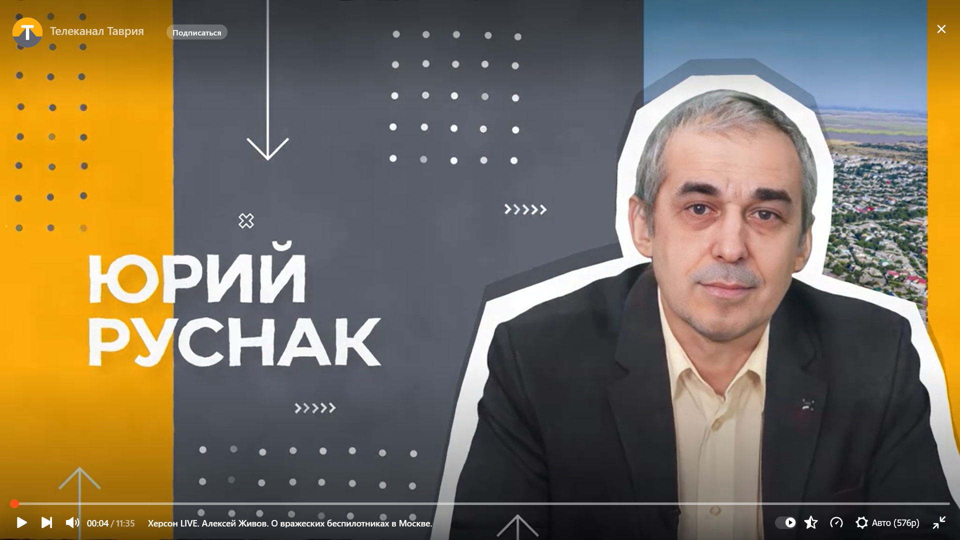 Но сам Мочар в титрах своих программ указан под псевдонимом “Юрий Руснак”. Пропагандист ни разу в соцсетях или других пабликах не упомянул, что является сотрудником “Таврии”.