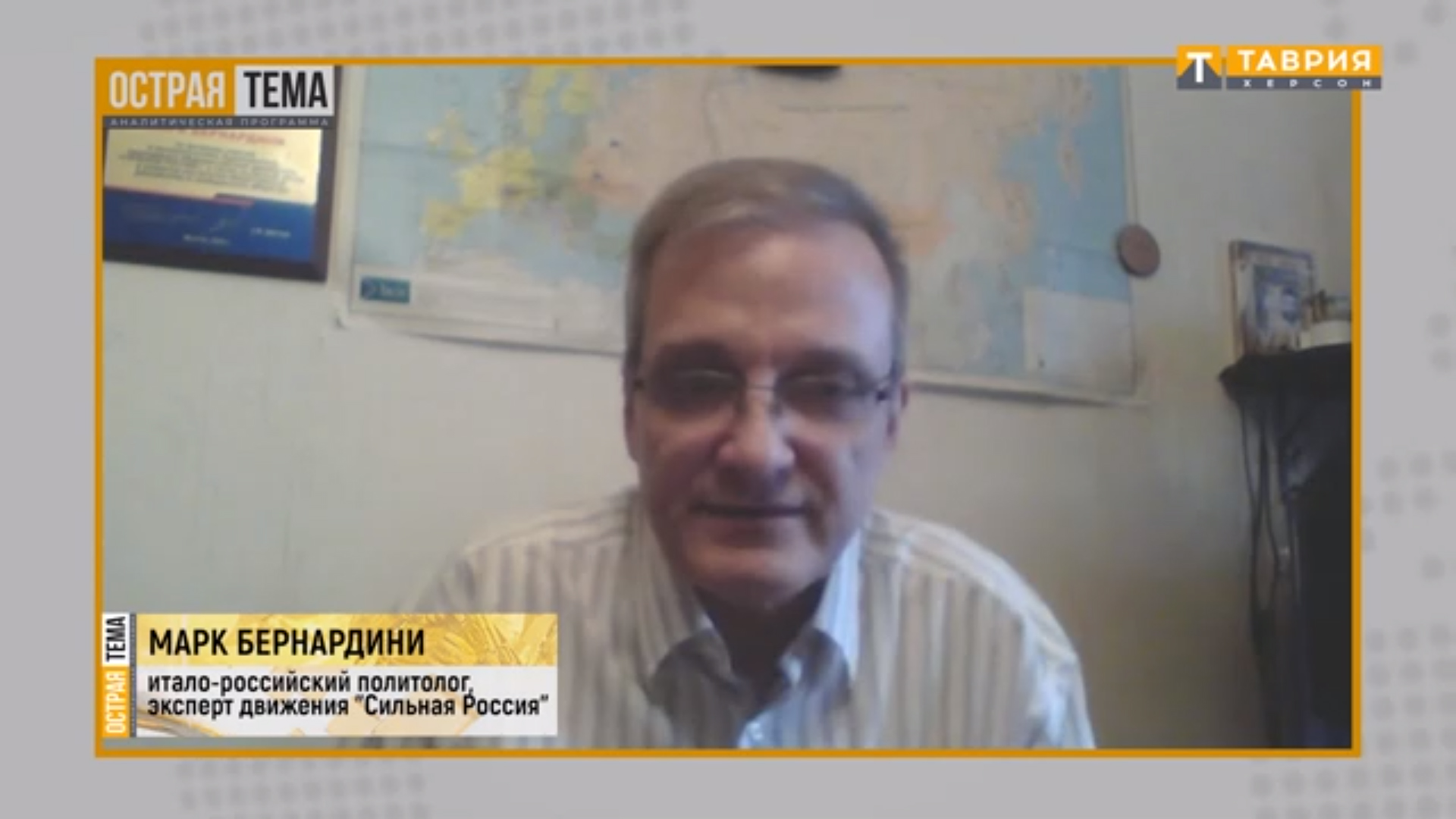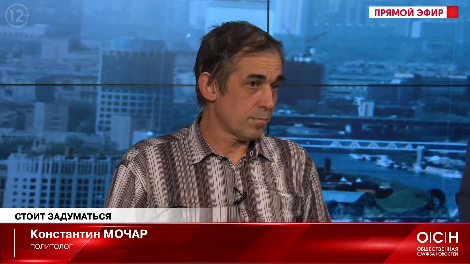 Скриншот из программы от 2022 года, в которой Константин Мочар принял участие до начала работы на ТРК “Таврия”. Если раньше пропагандист закрашивал седину, то, начав работать на “Таврии”, прекратил это делать. Видимо, для того, чтобы вымышленный им “Юрий Руснак” выглядел иначе.Преобладающее большинство сообщений и высказываний Мочара выдержано в духе агрессивной антиукраинской пропаганды, за что в 2021 году в отношении него было возбуждено уголовное производство по ч.1 ст.110 Уголовного Кодекса Украины: “Умышленные действия, совершенные с целью изменения границ территории или государственной границы Украины в нарушение порядка, установленного Конституцией Украины, а также публичные призывы или распространение материалов с призывами к совершению таких действий”.