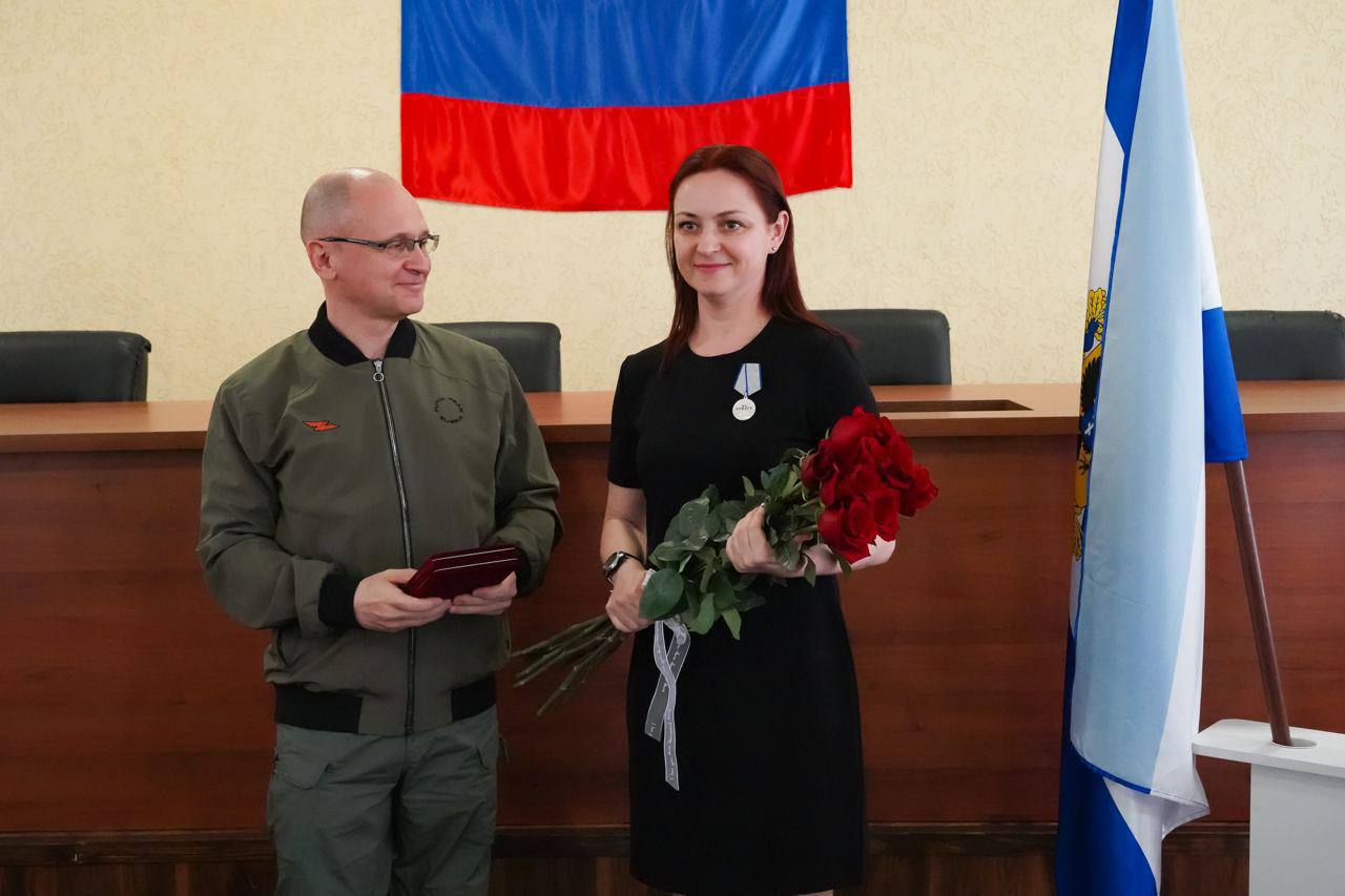 Заместитель главы администрации президента России и один из кремлевских кураторов оккупированных территорий Сергей Кириенко награждает Юлию Сипко.Сипко – ведущая программы “Полевая почта”, которая выходит на телеканале “Таврия” еженедельно. Цель программы – создание героического образа российской захватнической армии и одновременная демонизация украинцев. Оккупацию украинских территорий в программе освещают как “освобождение”.
