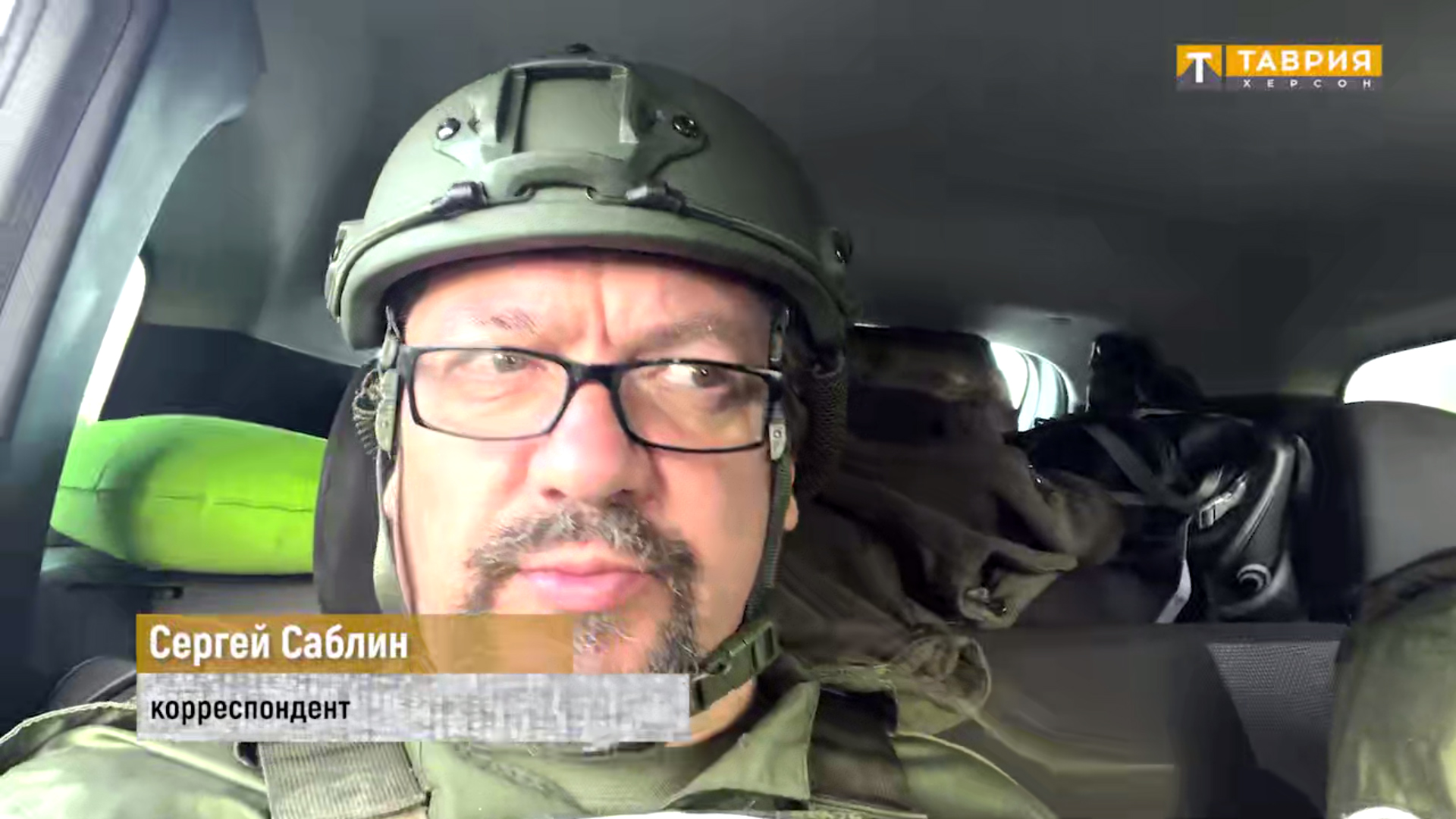 Должность шеф-редактора пропагандистской “Таврии” Сергея Саблина на телеканале не очень афишируют. В этом качестве Саблин упоминается в титрах лишь в одном из сюжетов, хотя появлялся в кадре неоднократно.