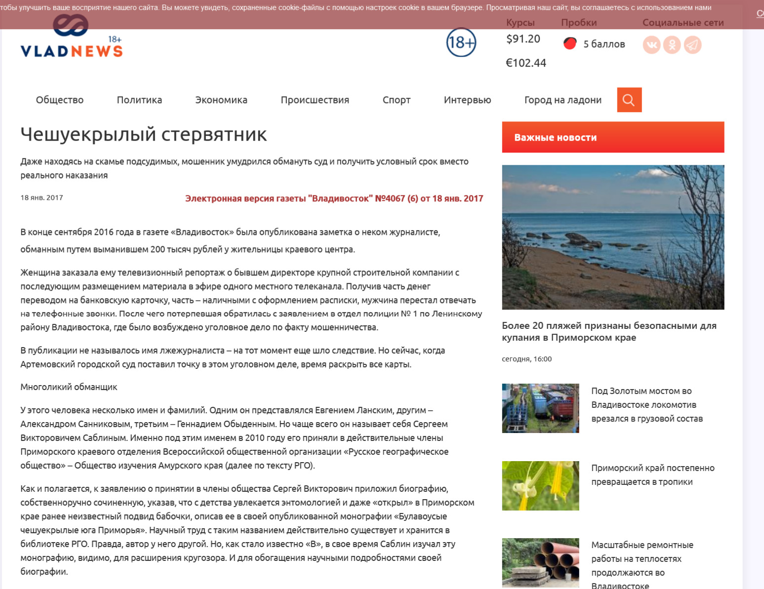 Фамилия Милованова упоминается в решении Ленинского районного суда города Владивостока от 17 августа 2017 года. В документе говорится о том, что Евгений Милованов вступил в Российское географическое общество под псевдонимом Сергей Саблин. Тогда Милованов/Саблин обращался в суд с иском о восстановлении членства в обществе, которого его лишили, когда стало известно, что мужчина использовал этот статус для мошеннических действий.В российских медиа есть немало публикаций о Милованове/Саблине. Там, где мужчина упоминается под вымышленной фамилией, речь идет о нем как о журналисте, путешественнике, фотографе, обладателе профессиональных наград. На публичных мероприятиях мужчина также представлялся как Сергей Саблин.Как выяснил Nikcenter, скрывать собственную личность пропагандист имел веские основания. Его настоящие имя и фамилия – Евгений Милованов – упоминаются в нескольких судебных процессах по уголовным делам от 1998, 2000 и 2004 годов, информацию о которых можно найти в российских источниках.