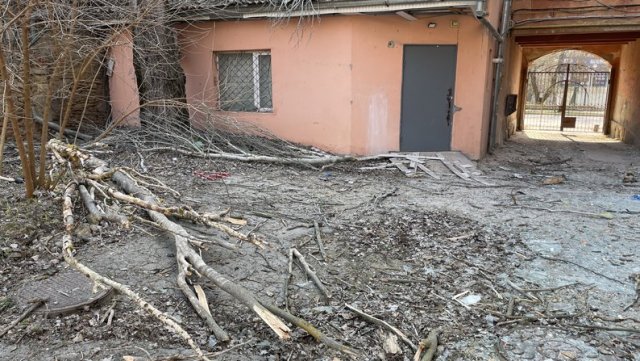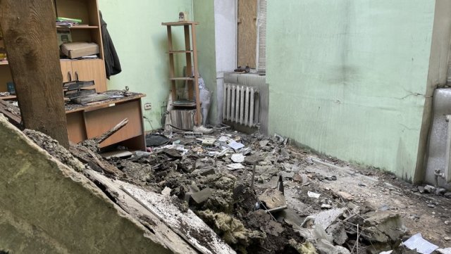 "Все каміння посипалось на дорогу, на проїжджу частину і на пішохідну дорогу. І ті що проходили пішоходи — ті були поранені. Добре, що під час прильоту у нас тут уже нікого не було, ми не затримувалися. Про все дізналися з телефонного дзвінка начальниці нашого управління", — розповіла директорка. suspilne.media