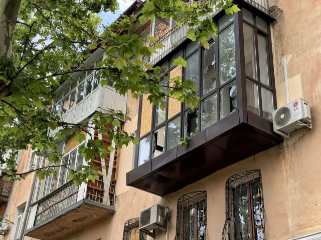 Уночі російські військові били по середмістю Херсона. Під ударом був багатоповерховий будинок. Наталія показала свою квартиру після обстрілу.