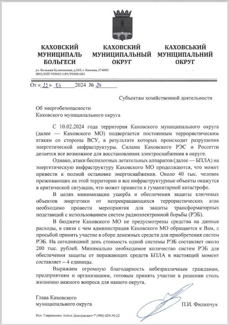 Він додав, що тим часом, місцеві "діячі" колаборанти не придумують нічого кращого, як запустити збір на РЕБи, що допоможуть захистити ремонті бригади. Сума збору – 800000 рублів. Бюджетних коштів на це немає. "Вєлікая держава" нічим не допоможе. Вирішення проблеми, яку створили окупанти, перекладають на місцевих жителів, які наразі виживають як можуть: готують їжу на вогнищах, живуть в суцільній темряві, без зв'язку, роботи і взагалі якогось розуміння, чи допоможуть їм хоч чимось."Цинізм і дурість просто немає меж. Коли думаєш, що дно пробито, але, виявляється, можна пробити ще нижче", - підкреслив депутат.