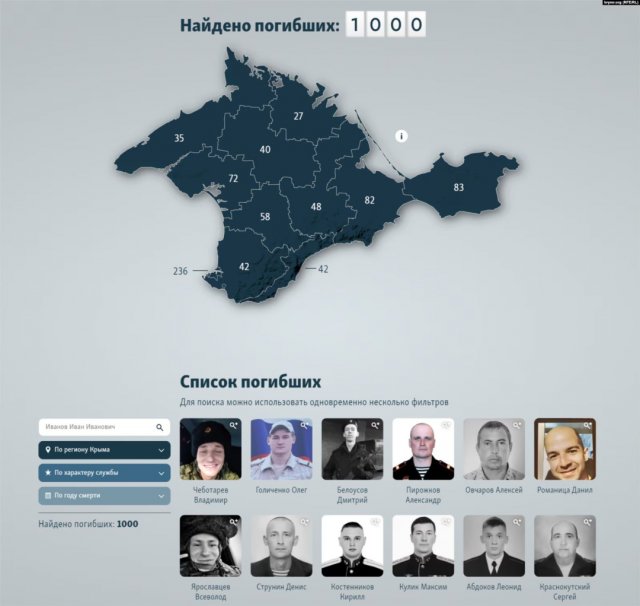 Станом на цей момент, статус близько третини вбитих на війні проти України кримчан поки не відомий, і редакція продовжує його встановлювати, додали в «Крим. Реалії».