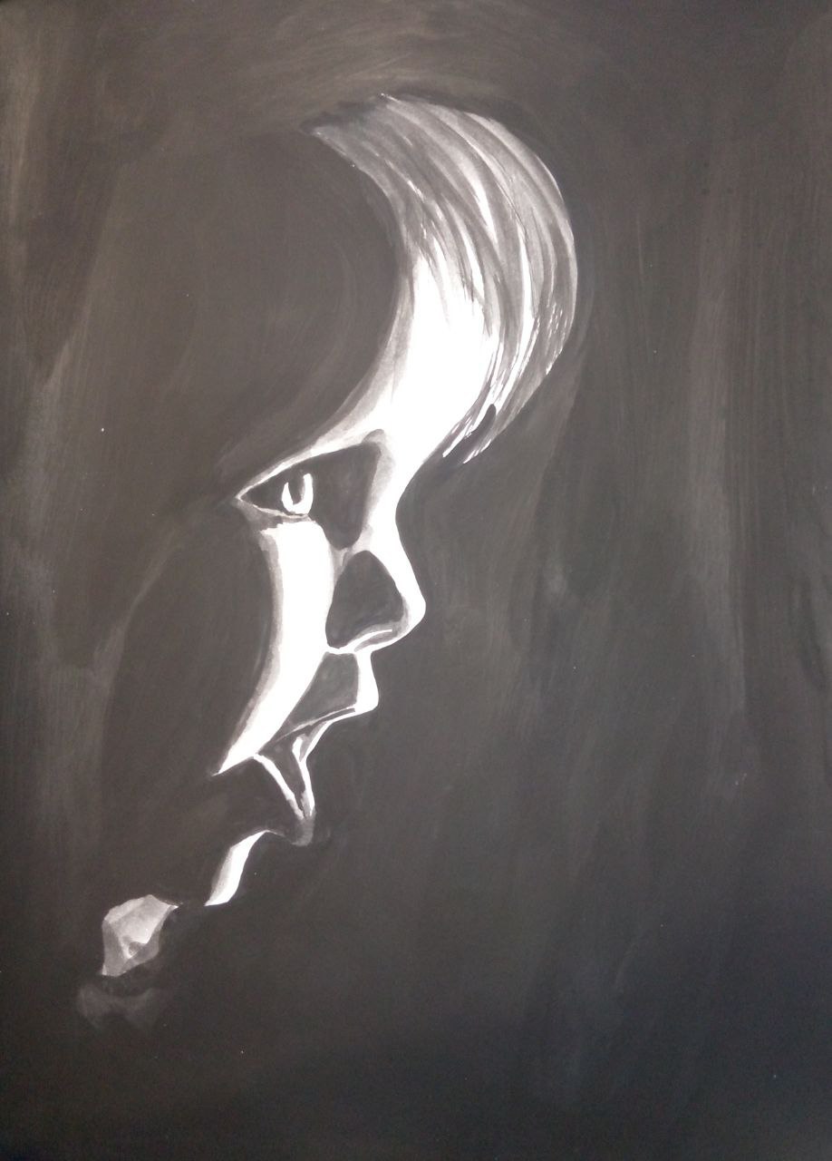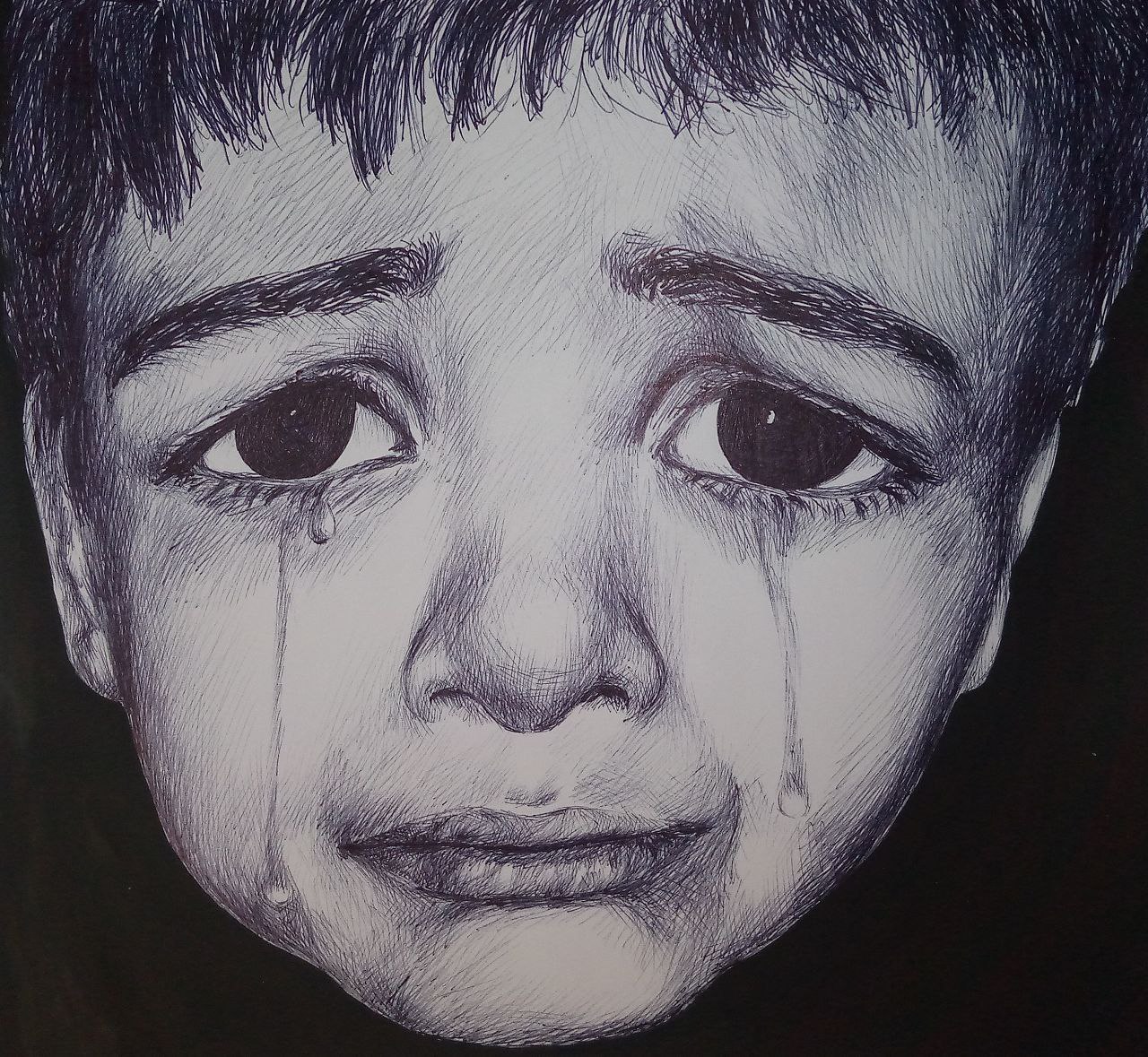 — Серію Back to black я робила у проміжку часу між груднем-січнем 2023-2024 років. Тоді по Херсону прилітало дуже сильно. В один день рашисти влучили по газопровідній трубі і все місто залишилось на свята без газу. Це був дуже важкий виклик для всього міста, спеціалісти не знали, як відремонтувати трубу. Саме в той час я намалювала хлопчика, який плаче. Я малювала його 2-3 дні, хоча зазвичай на картину йде 6-8 годин. Це дуже важка та емоційна робота вийшла.