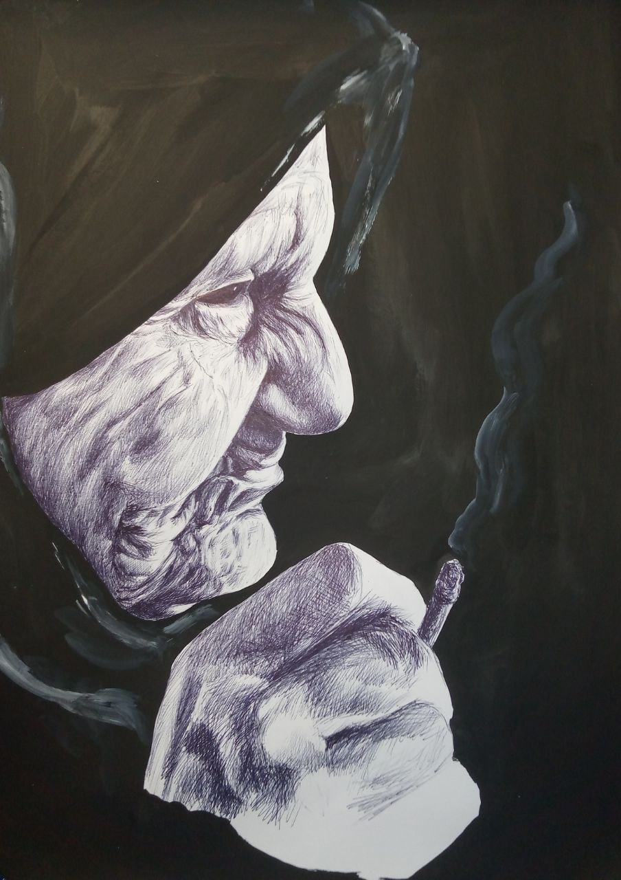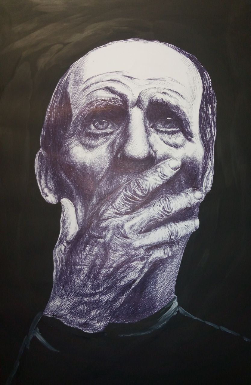 — Під час навчання в університеті я пробувала різні стилі та техніки. Раніше малювала і гуашшю, і маслом. Дуже надихалася роботами нашого видатного херсонського художника Володимира Чуприни, навіть писала різнокольорові та яскраві картини в його стилі. Проте, із початком війни світосприйняття у мене стало чорно-білим. Звісно, це відобразилось на моїх картинах, які я почала малювати кульковою ручкою.