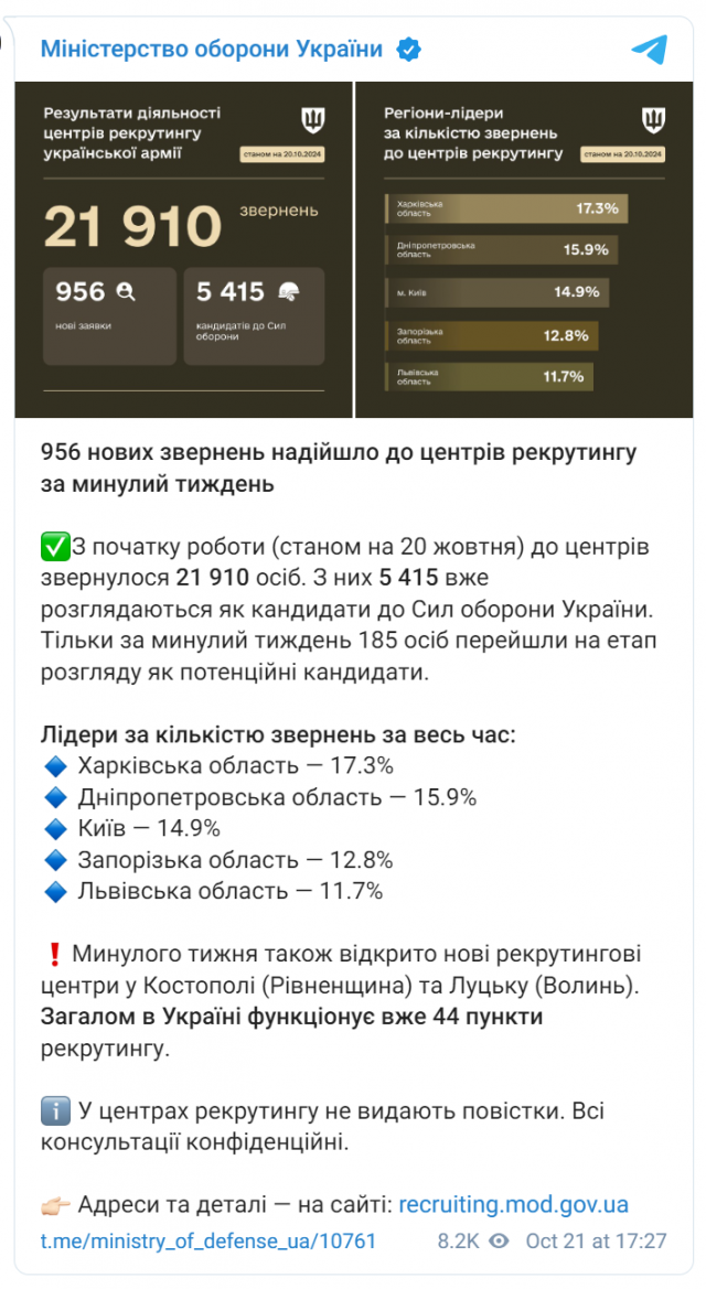 Важливо зазначити, що в центрах рекрутингу не видають повістки, а всі консультації проводяться конфіденційно.