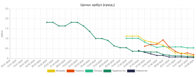 Якщо порівнювати ситуацію на ринку кавунів в Україні з іншими країнами регіону моніторингу проєкту, то дана продукція залишається більш доступною тільки в Узбекистані та Таджикистані, що є традиційним.