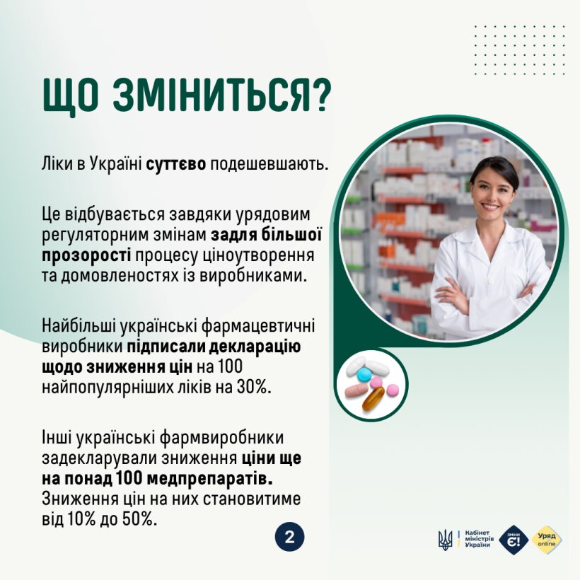 Які саме ліки подешевшають та коли це відбудеться – дивіться в інфографіці Департаменту комунікацій Секретаріату Кабінету Міністрів України.