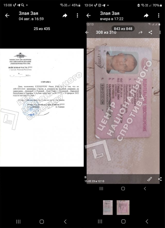 Злочинець вже давно ідентифікований, його документи (в т.ч. паспорт) можна побачити в Інтернеті. Втім, завдяки даним, переданим на Спротив бот, вдалося дізнатися цікаві подробиці про життя цього злочинця. І звʼязуючою ланкою є його дружина Клещерева Вілена Геннадіївна, 26.12.1983 р.н.Зокрема, завдяки моніторингу її переписок в соціальній мережі Вконтактє вдалося встановити, що після того, як російський диктатор оголосив мобілізацію в рф, Іван Клещерев вирішував питання щодо уникнення мобілізації. Звісно, за гроші. Наприклад, подруга Вілени Тетяна намагалася допомогти своєму племіннику “не потрапити в армію, або потрапити в місце, де його не кинуть на забій”. Дружина полковника на це прохання чітко відповіла, що дала номер подруги своєму чоловікові, і він вже скаже “що, як, куди та скільки”.