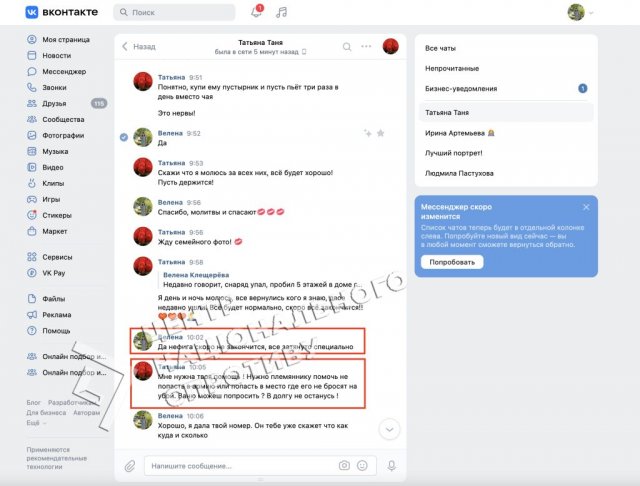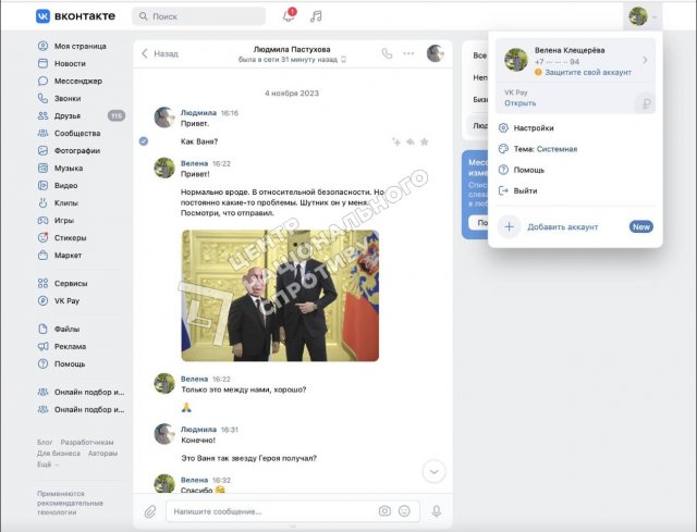 На жаль, переписок із чоловіком Вілєна у Вконтактє не веде. Периписується з ним в Телеграм, де злочинець підписаний як “Злая Зая”.