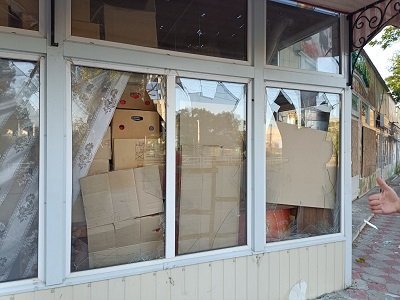 «Сьогодні, нажаль, і нам прилетів "гарячій прівєт от братьєв" на гуманітарний центр... Дякувати Богові, що на той момент вже нікого не було, але потрощені вікна і уламки говорять про лють асвабадітєлєй та їхнє бажання помститися за непокору... Завтра колеги пообіцяли закрити вибиті вікна і навести лад, але просимо мешканців Дніпровського району до понеділка не приходити до Дніпровської районної у місті Херсоні організації ТЧХУ і бажано взагалі менше переміщуватися по району! Бережіть себе та близьких! Все буде ПЕРЕМОГА».