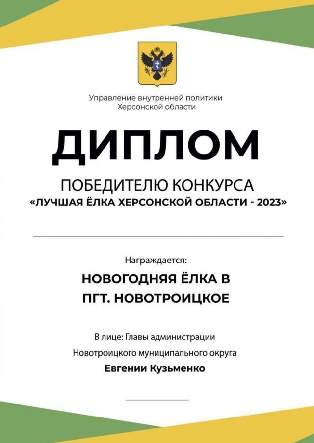 Гауляйтер філіпчук не став вимагати переголосування, тому вся слава дісталась гауляйтерці кузьменко. Хоча окупанти до «переможниці» не мають жодного стосунку. Блакитна ялинка на площі перед Новотроїцьким центром культури і дозвілля - жива і посаджена за кілька десятиліть до окупації.