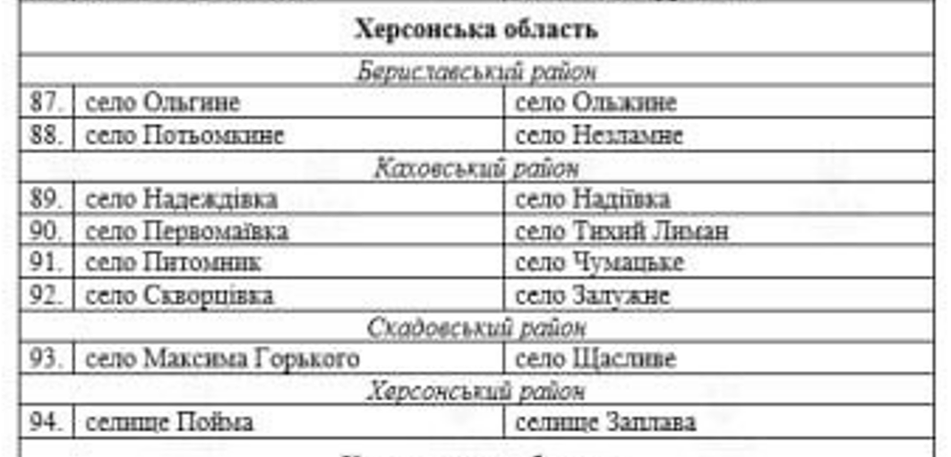 Так, у Каховському районі пропонують перейменувати чотири села: