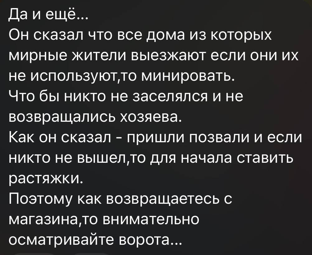Також окупантам наказали мінувати порожні оселі. Російський військовий ззізнався, що вони в такому випадку ставлять “розтяжки”.
