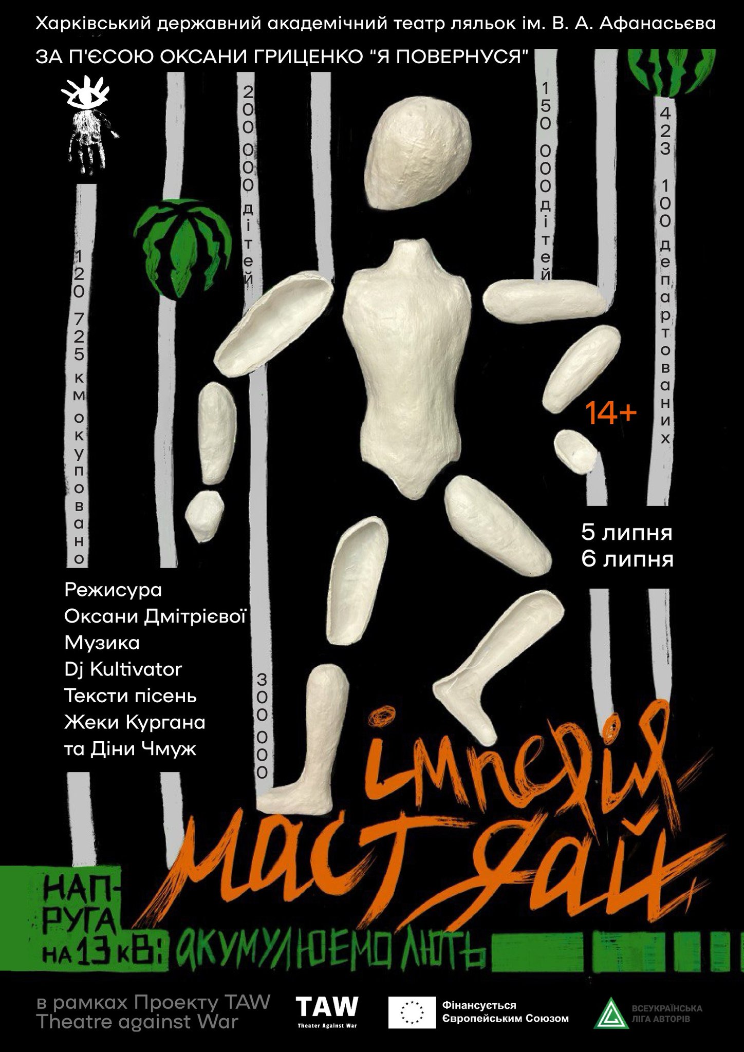 У Харкові 5 липня 2025 року відбувся перший показ вистави "Імперія маст дай" з історіями підлітків із Херсона, яких окупаційна влада вивезла до Криму під виглядом відпочинку.