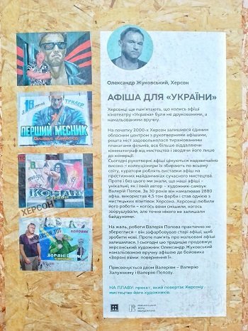 Всі херсонці пам'ятають, що колись афіші з анонсами фільмів для кінотеатру Україна були саме такими - рукотворними. Їхній автор - Валерій Попов. За 30 років кількість намальованих ним афіш сягнула 2800. Це була мистецька візитівка Херсона. Зараз роботи Валерія Попова майже не збереглися.