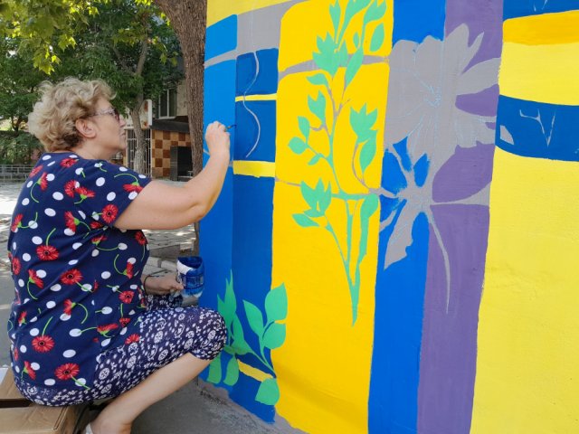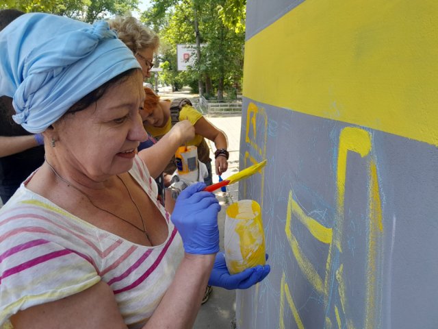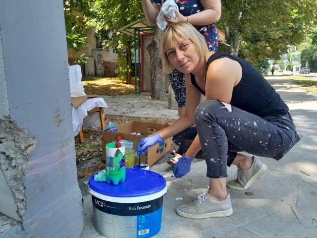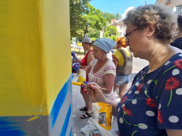 У Херсоні прикрашають барвами бетонні вуличні укриття.