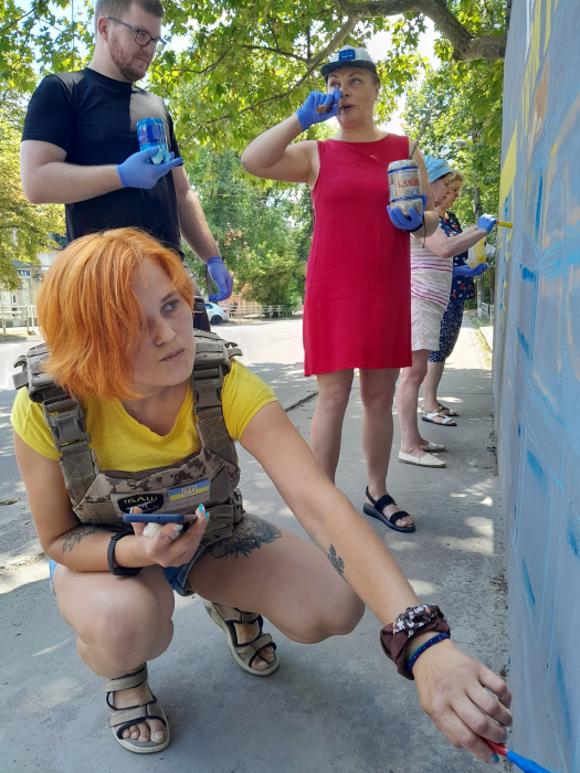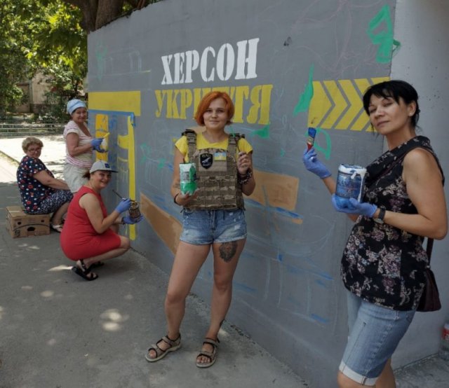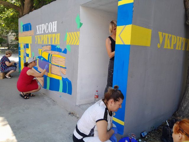 Так, в рамках відкритого арт-фестивалю стінописів «Від Конституції до Незалежності» на укриттях, які розташовані на вулицях Херсона почали з’являтися нові жовто-блакитні малюнки.