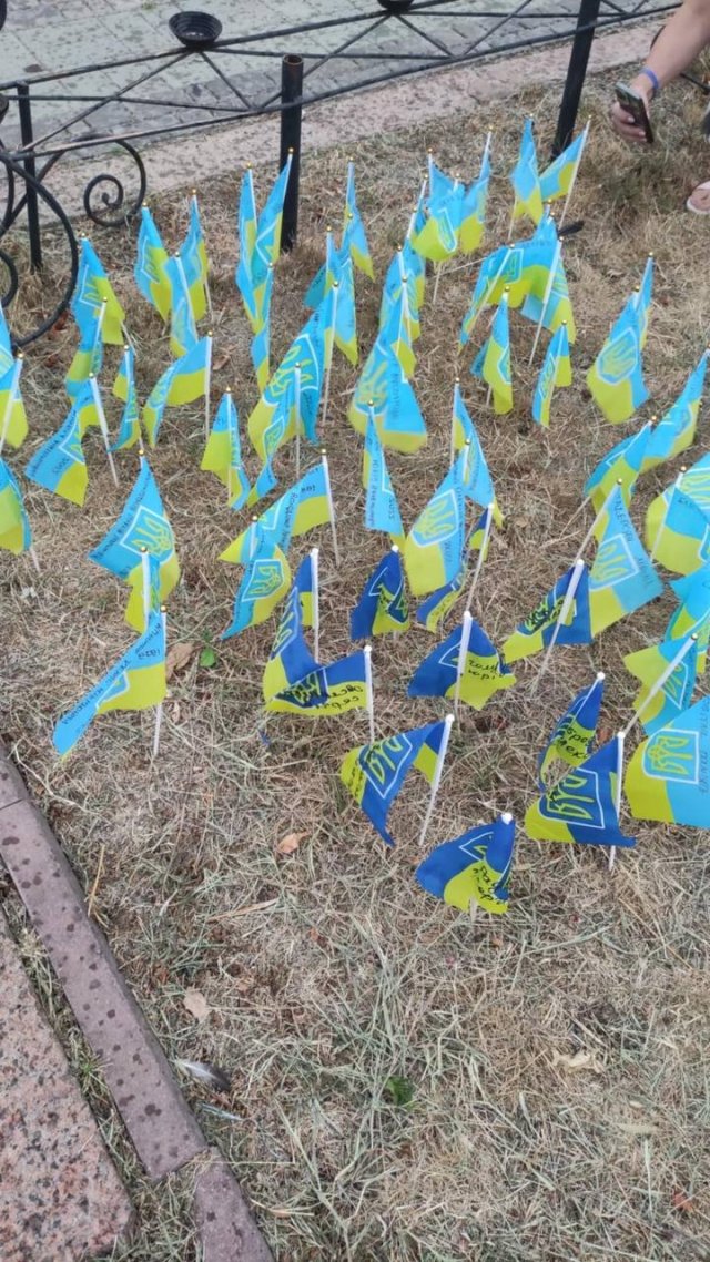 На прапорцях написали імена та прізвища хлопців, які загинули у Херсоні — біля обласного ліцею, у Бузковому парку, Каланчаку. На пам'ять про всіх херсонців, які загинули за Україну, каже депутатка."Сергія Зелінського написали, Васю Паламарчука. Тобто, кого ми пам'ятали станом на зараз. Звісно, це не всі. Але тепер до цього острівка може кожен прийти й поставити свій прапорець на пам'ять загиблому за нашу Україну воїну із Херсонської області", — розповіла Оксана Погомій.