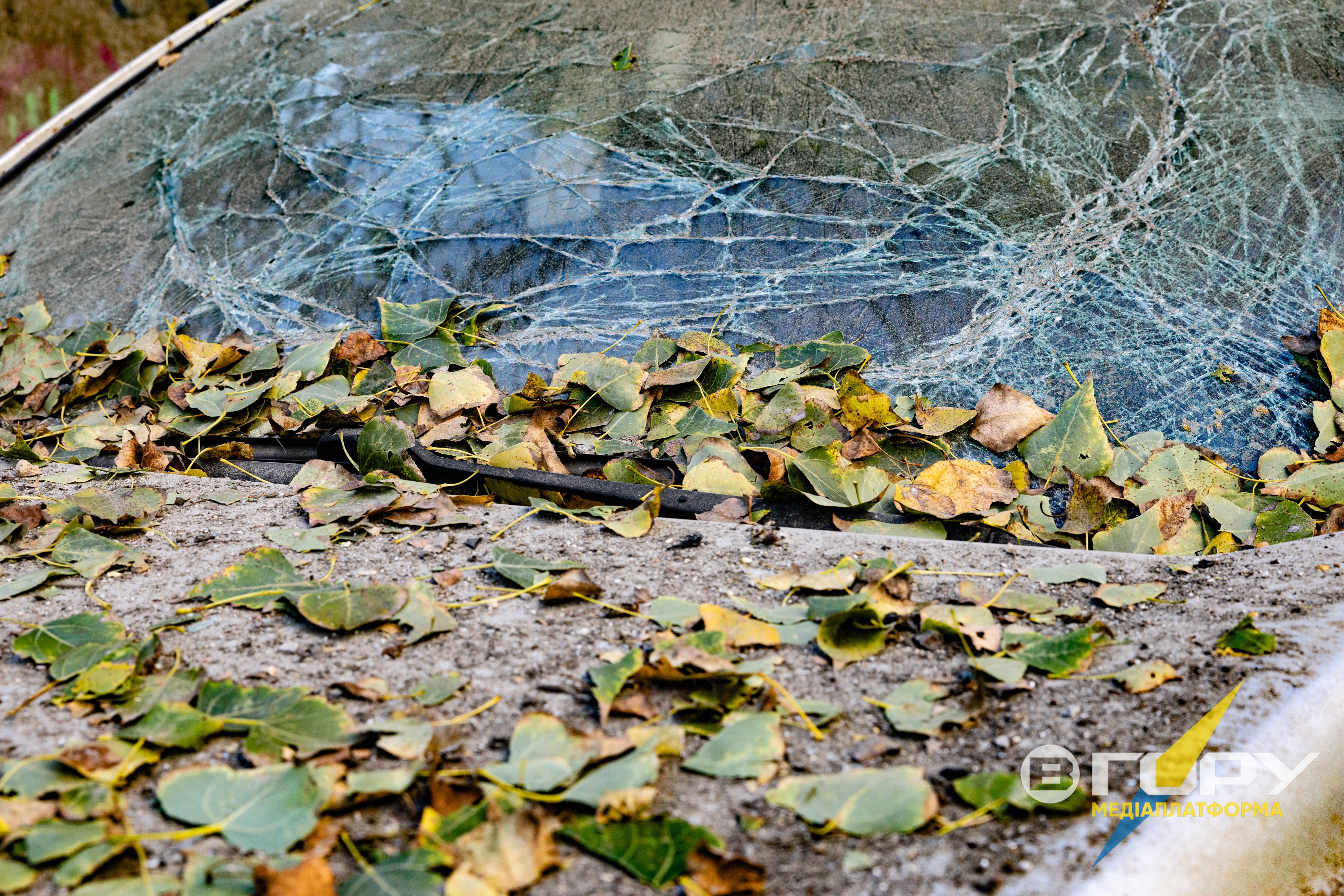 Окрім цього, у машині, яка стояла поряд з офісним центром пошкоджене лобове скло.