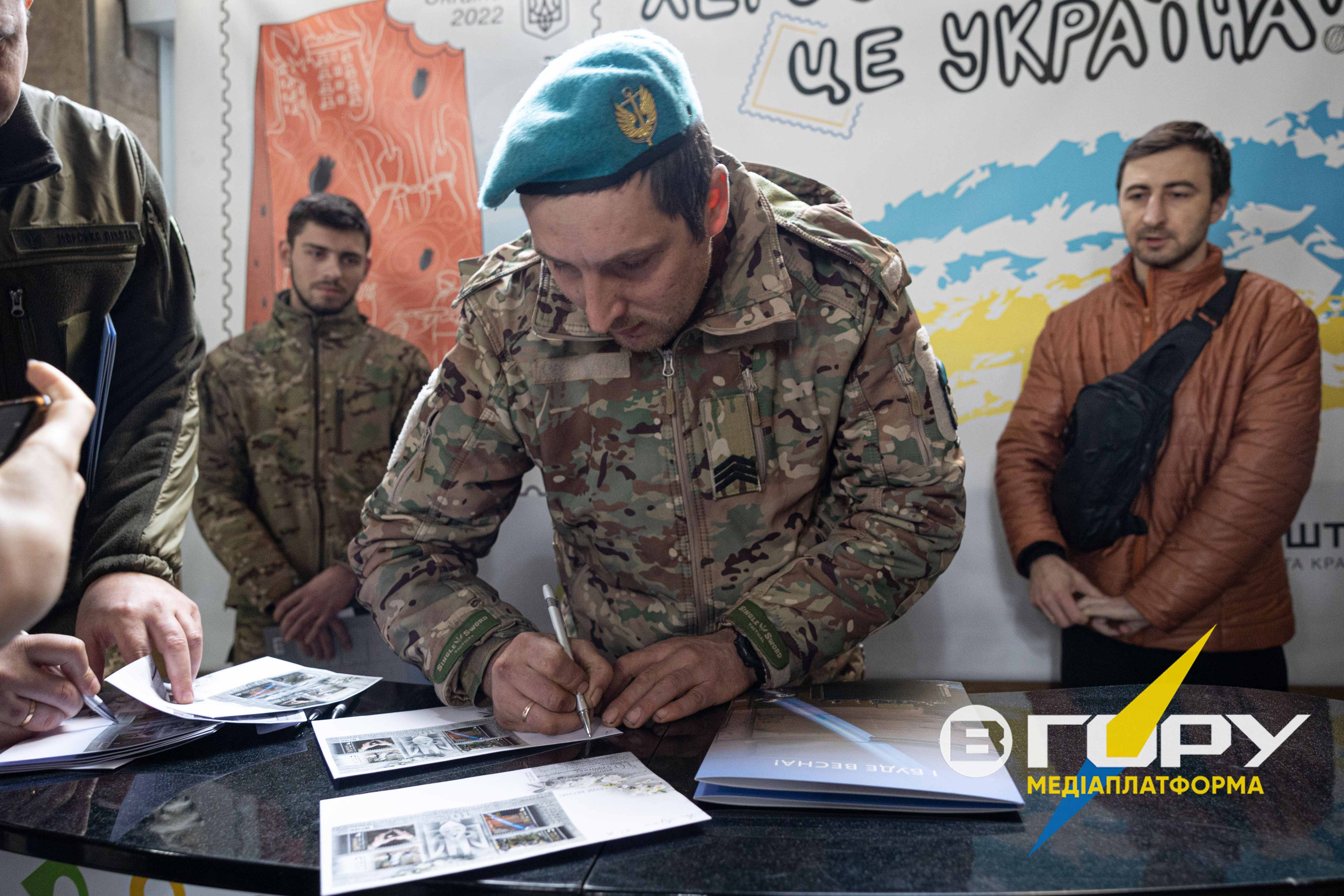 23 лютого в Херсоні погасили поштовий блок марок “І буде весна”, присвячений спротиву українського народу протягом 10 років війни. Тираж – 250 тисяч примірників.Фотокореспондент Медіаплатформи “Вгору” зробив світлини з цього заходу.