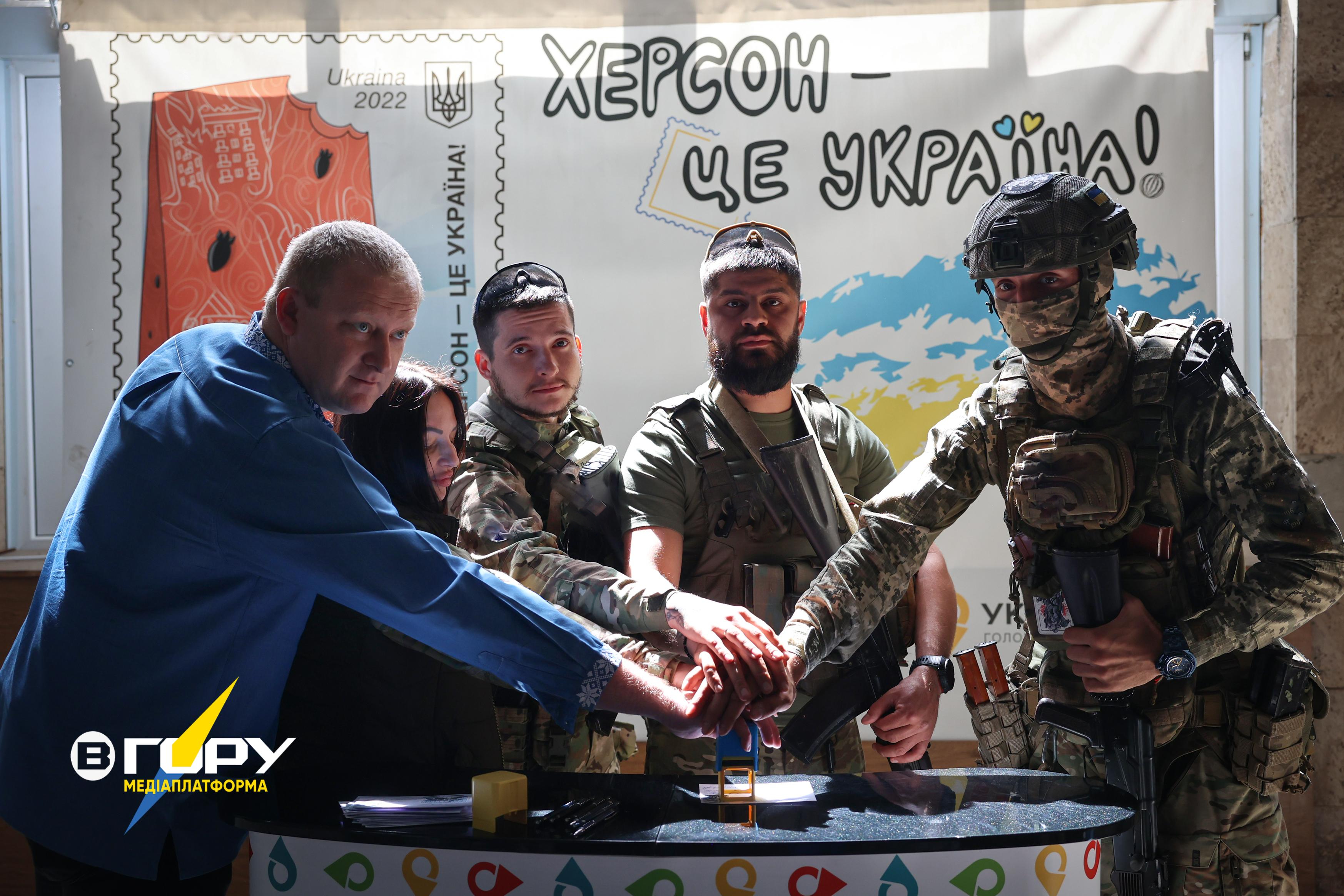 8 травня в Херсоні погасили поштовий блок марок “Русскій воєнний флот – до дна!”. Він присвячений втратам окупаційними військами військово-морських суден за два роки повномасштабного вторгнення РФ на територію України.Фотокореспондент Медіаплатформи “Вгору” зробив світлини з цього заходу.