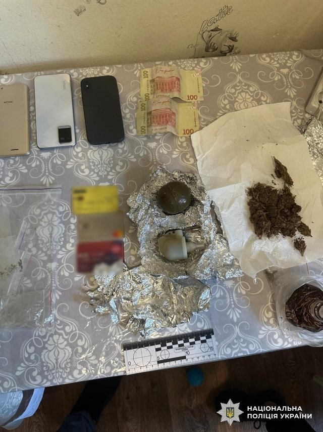 Під час слідчих дій правоохоронці вилучили у зловмисників кілька десятків грамів готового до споживання «канабісу», отримані злочинним шляхом гроші, два корпуси гранат типів «Ф-1» та «РГН», підривачі до них, тротилову шашку, тару для фасування наркотичних засобів і засоби для їх споживання.