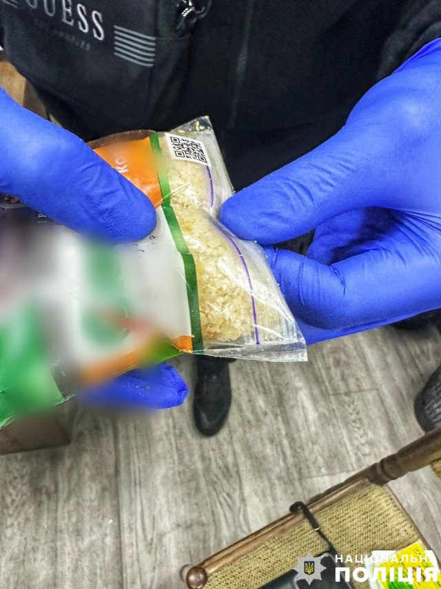 Під час особистого огляду в чоловіка виявили 100 грамів небезпечної речовини A-PVP («солі»). Також на підставі ухвали суду в будинку підозрюваного поліцейські провели обшук, в результаті якого виявили та вилучили зіп-пакети для фасування, електронні ваги, медичний шприц із невідомою рідиною, гроші, отримані від злочинної діяльності, банківські картки та мобільні телефони. Вартість вилученого за цінами «чорного ринку» становить близько 200 тисяч гривень.