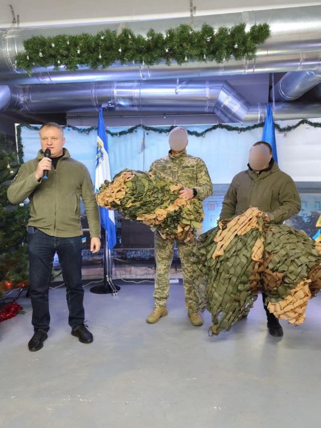 Також оборонці Херсонщини отримали маскувальні сітки. Їх напередодні свята у межах акції "Година для ЗСУ" сплели місцеві мешканці.Усі учасники різдвяного ярмарку були об'єднані спільною метою — допомогти Збройним Силам України.