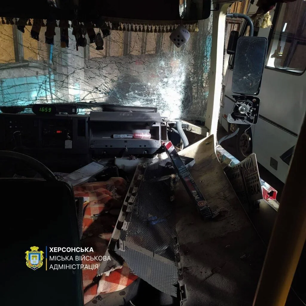Зазначається, що під удар потрапив автобус КП “Херсонкомунтранссервіс”, який перебував у Дніпровському районі міста.