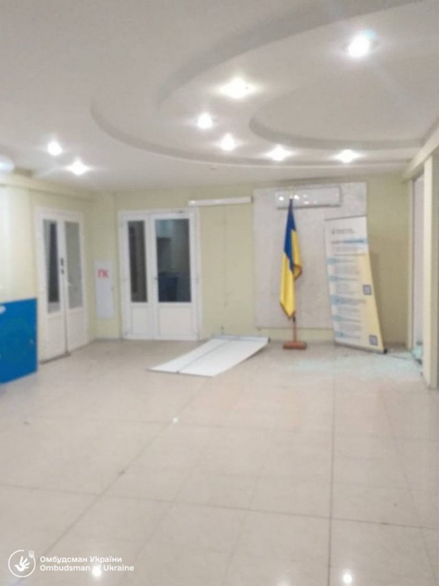 Начальниця об'єднаного координаційного пресцентру Сил оборони Півдня України Наталія Гуменюк додала, що крім будівлі, де розташоване представництво омбудсмена, також пошкоджено кілька автомобілів. Гуменюк зазначила, що про постраждалих немає інформації.