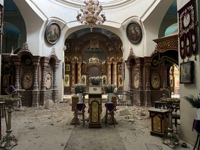 На опублікованих фотографіях видно, що всередині храм завалений уламками та вкритий пилом.