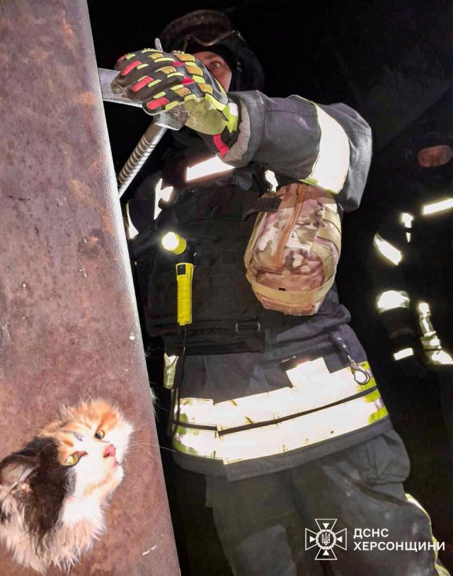Сьогодні вночі херсонським рятувальникам надійшло повідомлення про те, що котик застряг у трубі, не може самостійно вилізти та сильно м’явчить, благаючи про допомогу.Про це звітує пресслужба ДСНС Херсонської області.