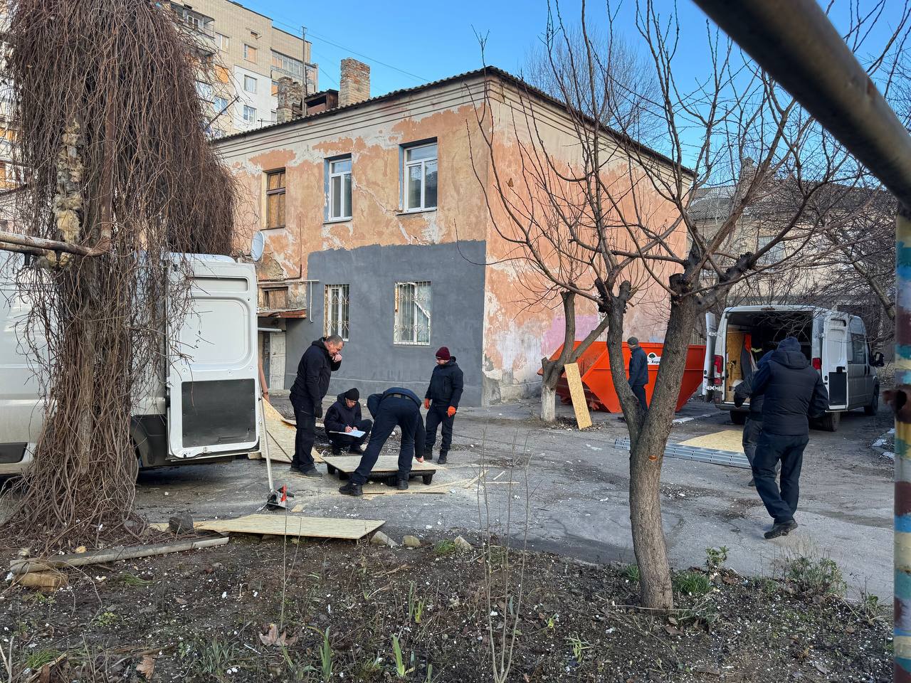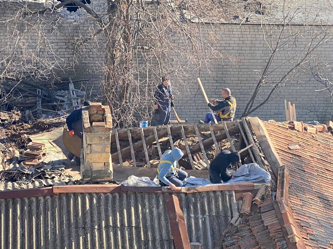Від самого ранку працівники Херсонської обласної комунальної аварійно-рятувальної служби працюють над відновленням пошкоджених будівель. Оперативно закривають вибиті вікна, ремонтують дахи та ліквідовують руйнування.