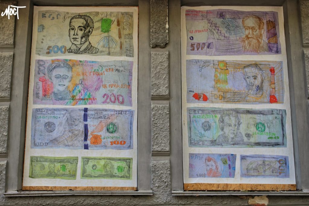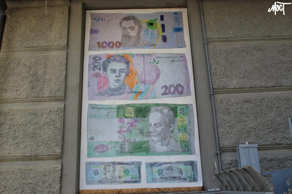 “Вперше Нестор почав малювати гроші в окупації Херсона. Малював українську гривню, американський долар, євро, англійський фунт.Нагадаємо, ілюстрації, які розміщуються на OSB-плитах, створені в рамках проєкту “На плаву”, що присвячено Херсону та херсонцям.