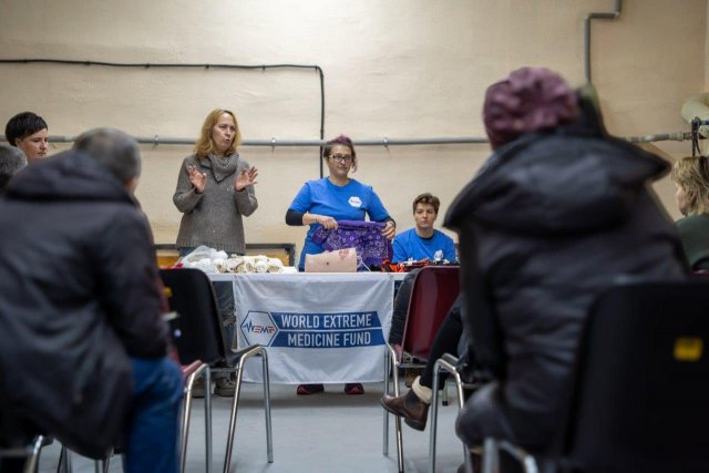 Учасники тренінгу працювали над покращенням навичок надання першої медичної допомоги, щоб за потреби врятувати себе, колегу чи іншого постраждалого внаслідок російської агресії.