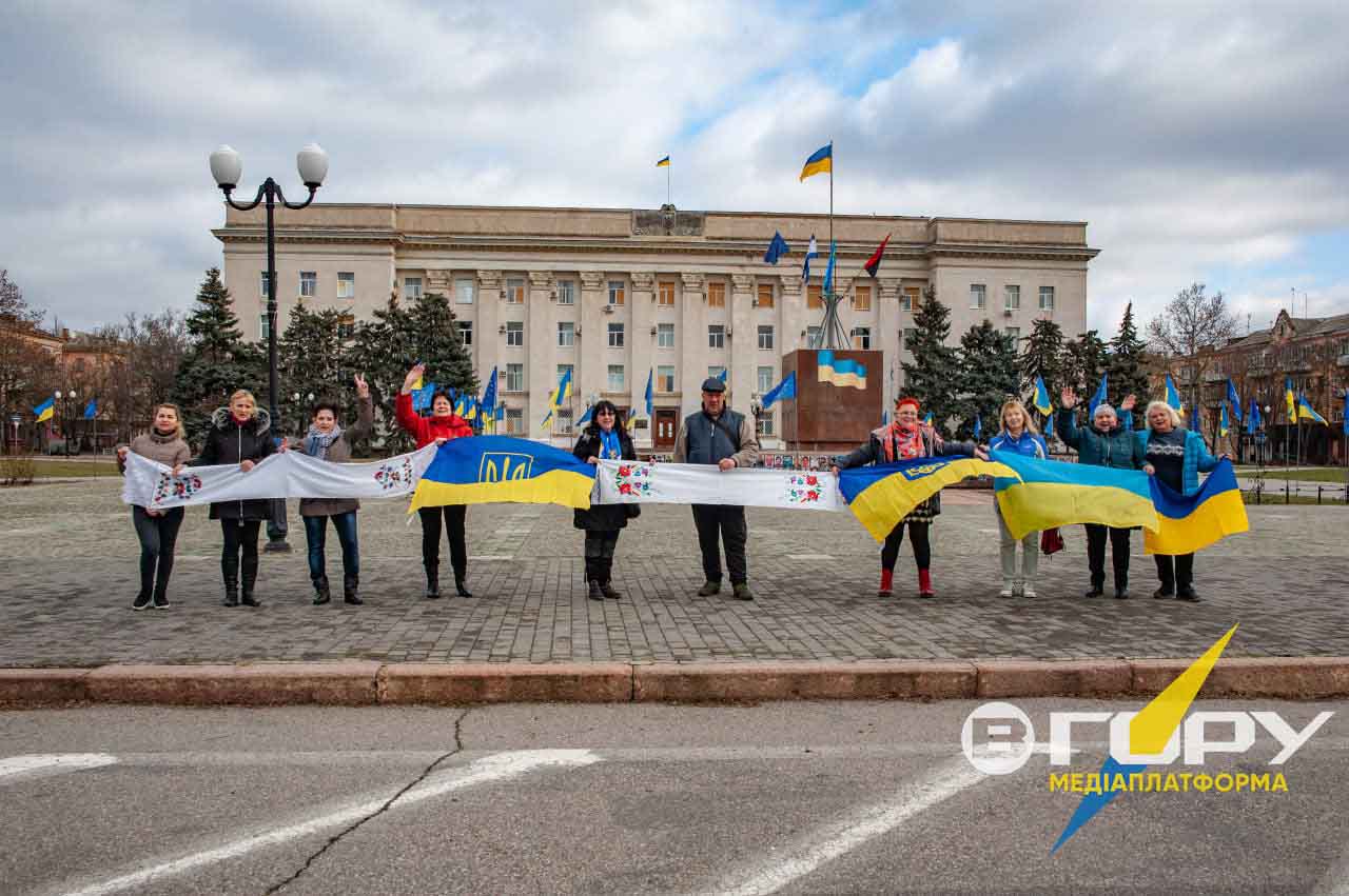 До війни акція “ланцюг єдності” проходила на Антонівському мосту, але його зруйнували російські окупанти, коли відходили з правобережжя Херсонщини.