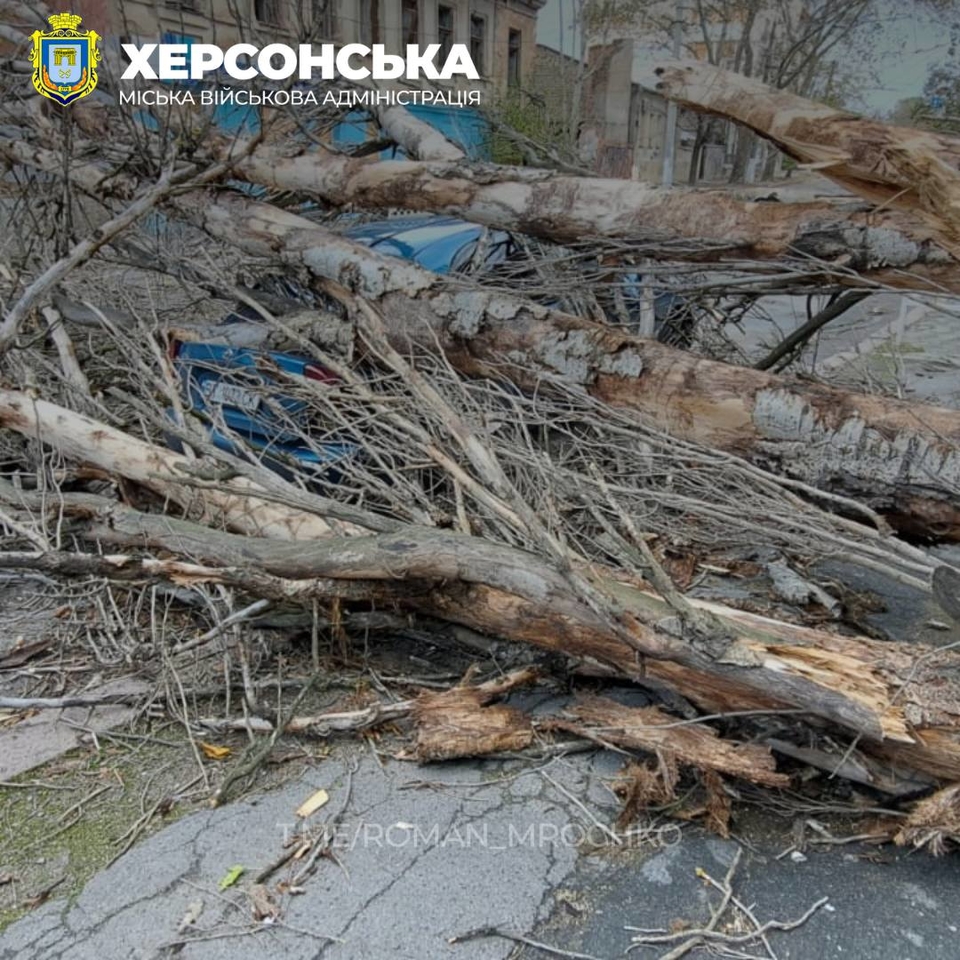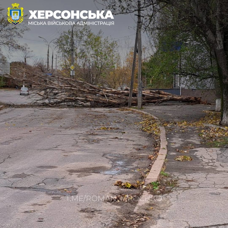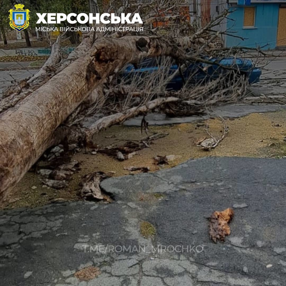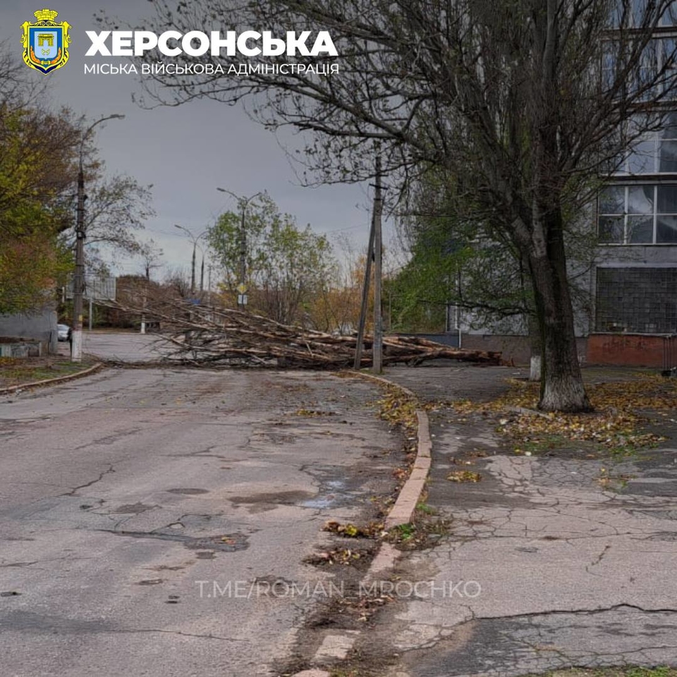 «Додає херсонським комунальникам роботи і негода, яка вирує другу добу. У центральній частині міста вітер повалив дерева, обмеживши рух транспорту», - написав Мрочко.